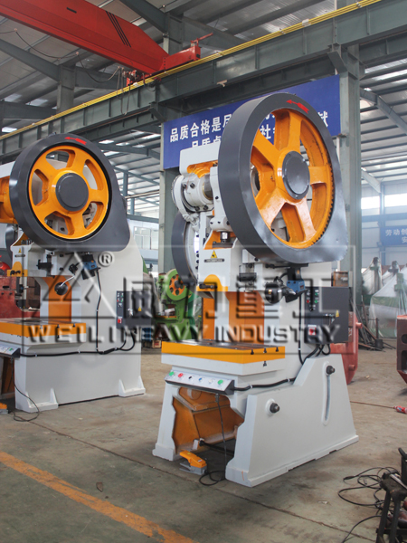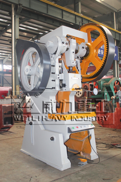 【產(chǎn)品描述】:可傾沖床是用于板料 沖壓的通用壓力機, 可實現(xiàn)剪切,沖孔,落料,彎曲和淺拉伸成形等冷沖壓工序。工作時人工送料,另外配置送料裝置時可實現(xiàn)單機自動化。 其結(jié)構(gòu)特點是:機身是用高強度鑄鐵制造,采用單盤氣動塊式摩擦離合器和制動器,無故障使用壽命遠高于同類產(chǎn)品?;瑝K帶有壓塌式保險裝置,當(dāng)機床超載時,保險器首先被壓塌,從而保證了整機不受損壞。其特點: