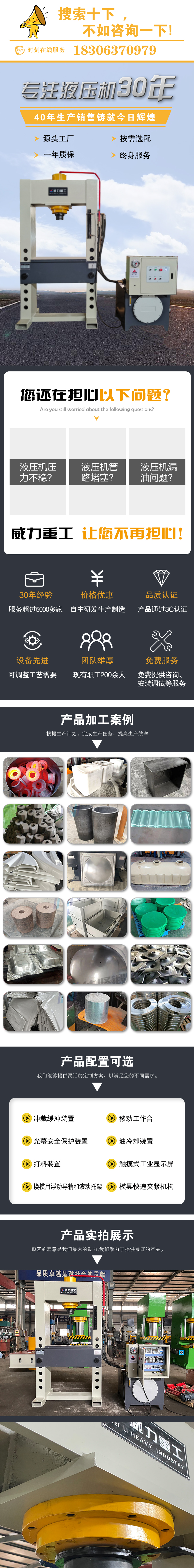 【產(chǎn)品描述】:30噸龍門框架式液壓機是一種高效、精準(zhǔn)的壓力成型設(shè)備,廣泛應(yīng)用于各種金屬、非金屬材料的壓制、成型和校正工藝中。其獨特的龍門框架設(shè)計和強大的液壓驅(qū)動系統(tǒng),使其具有出色的穩(wěn)定性和工作效率,成為現(xiàn)代工業(yè)生產(chǎn)中不可或缺的重要設(shè)備。 30噸龍門框架式液壓機采用高強度鋼材構(gòu)建龍門式框架,保證了設(shè)備的穩(wěn)固性和剛性。機身采用優(yōu)質(zhì)鋼板焊接而成,經(jīng)過精細的熱處